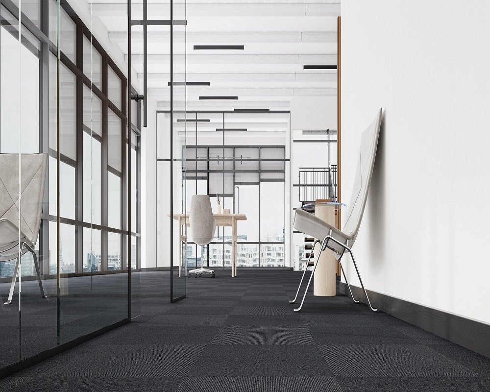 • Acoustics: Reduces noise and vibrations from foot traffic and external sources, contributing to a quieter workspace.