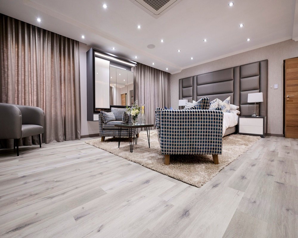 Resembling stone or ceramic tiles, LVT combines elegance with practicality, offering easy installation and low maintenance for a high-end look.